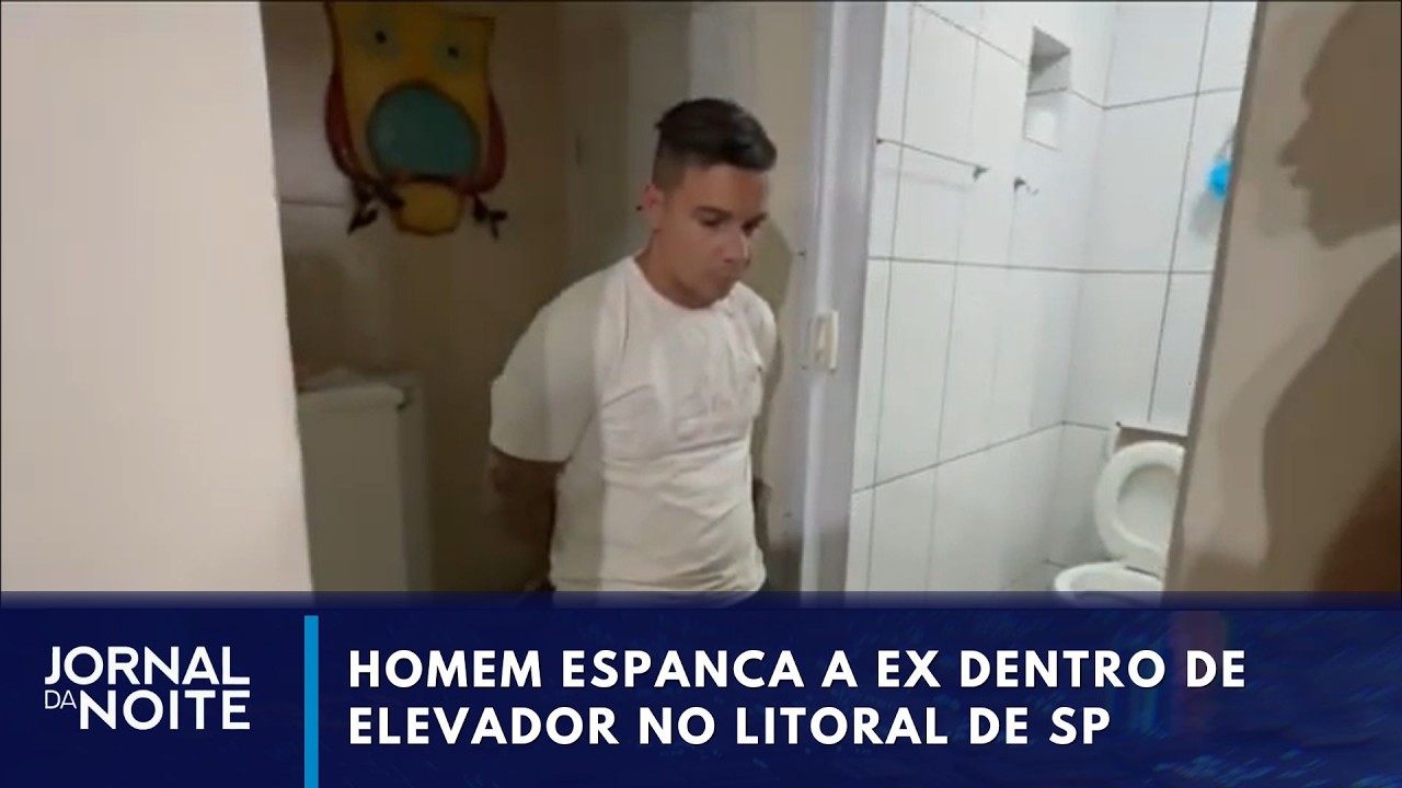 Mais um caso de violência contra mulher. Um homem foi preso depois de espancar a ex dentro do elevador no litoral de São Paulo.